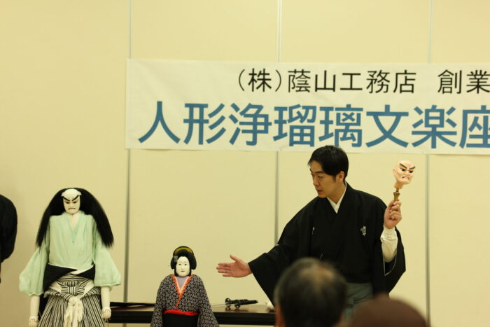 当日は、太夫・三味線・人形の各演者の皆さまによる丁寧な解説や、文楽の仕組みを実際に体験できるコーナーもあり、来場者の皆さまからは「間近で見る文楽は迫力があった」「人形の動きに感動した」「また開催してほしい」などといった声をたくさんいただきました。