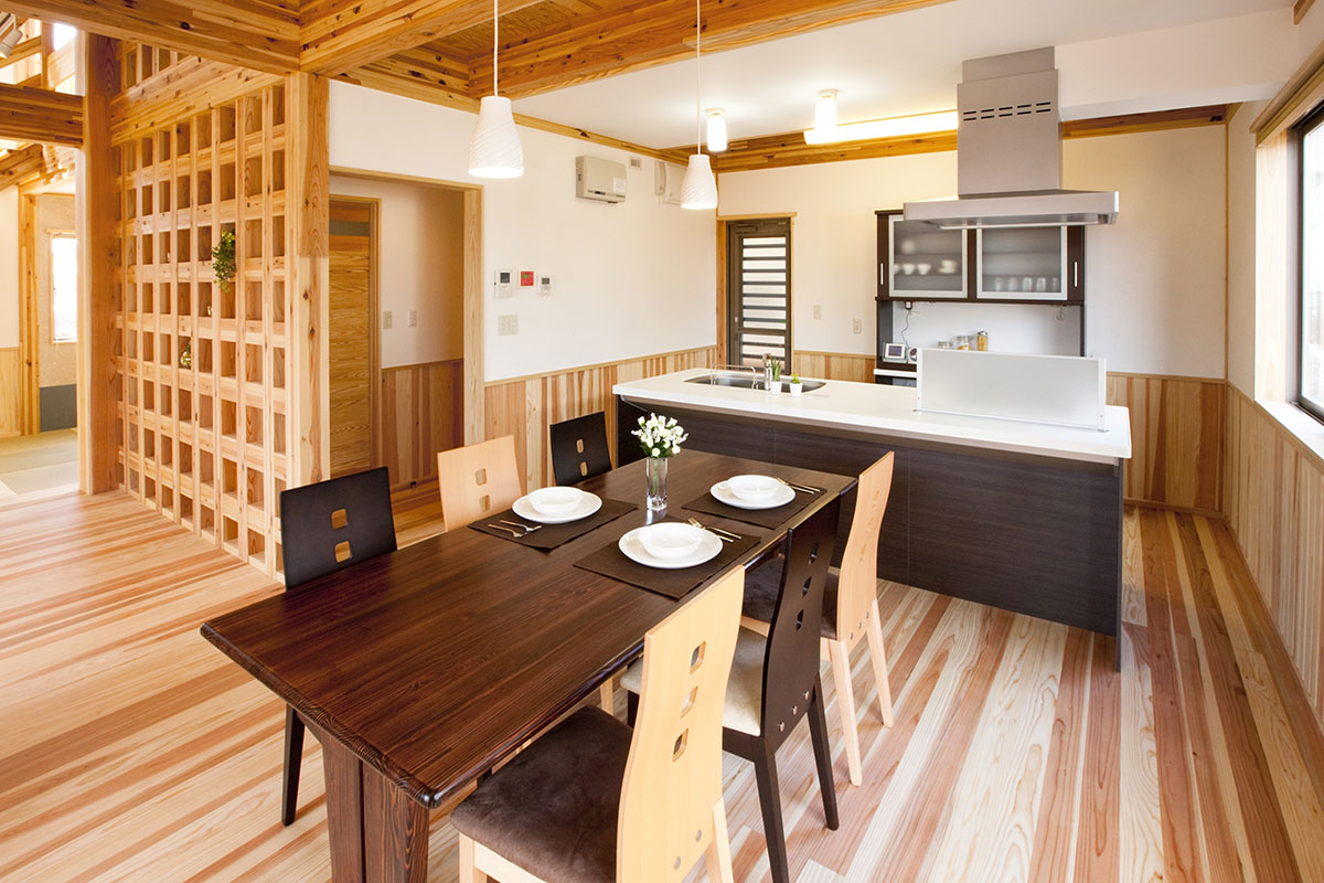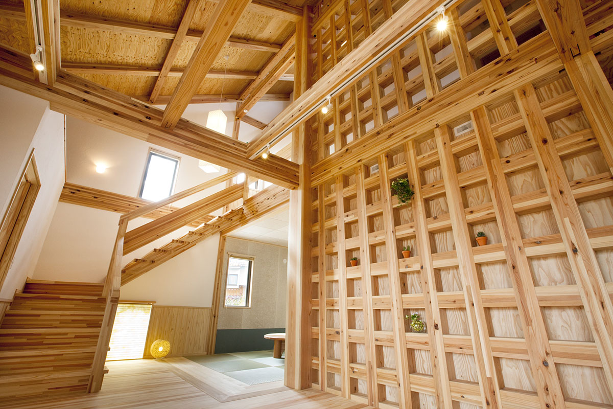 ふくしまの気候風土に適合し、環境に負荷を与えず、自然と共に生きる、そんな「家」をつくりたい … その思いは、家づくりに欠かせない木材から実現いたしました。樹木は生き物、樹木はその風土に合った大地でよく成育し ます。 そのため、ふくしまの風土で育った樹木は、ふくしまの家の木材に最も適しており、長期耐久性を実現してくれるといわれています。それはまさに「地産地消」の発想でした。