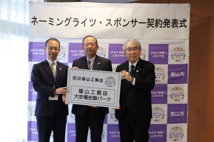このたび大安場史跡公園のネーミングライツ・スポンサーをさせていただくことになりました。本日は契約発表式に出席いたしました。